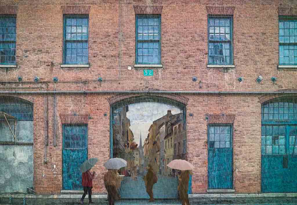 Rather than change anything, I just wonder how the children would look in B&W. There's two different things about them, the color and the lack of the "wavy" texture. So to tie them together a bit more, maybe keep them texture free but B&W.