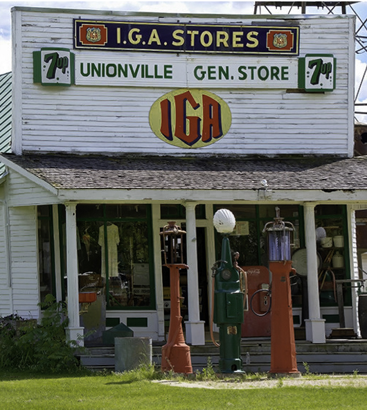Tom, I feel focusing the viewer to the store front is key, whatever technique. Keeping the whole image I favor Les's suggestion with sephia tone and vignetting. Or another view is closing in on the store front. Here I decreased the luminance on the grass, brightened somewhat the store sign and selectively increased exposure inside. |
