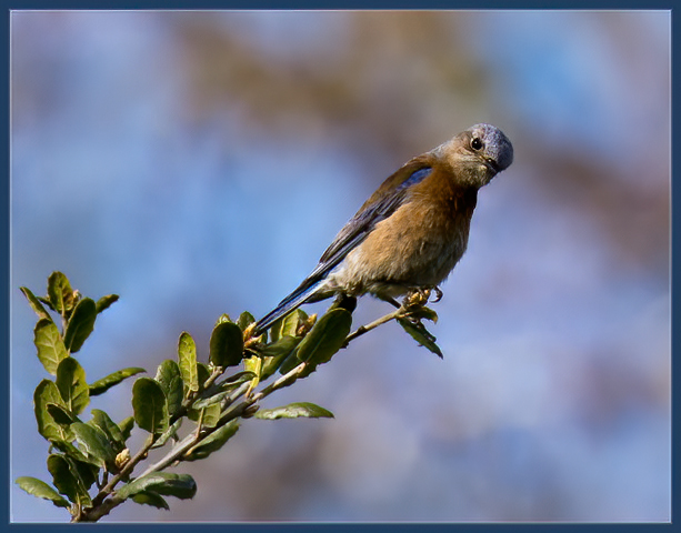 I love the complementary blue and brown tones with the contrasting green leaves Barbara. As Tom pointed out the leading line and catch light add to your image. In the attached image I applied DeNoise ai from Topaz and utilized Dehaze from PS to see if you liked. |