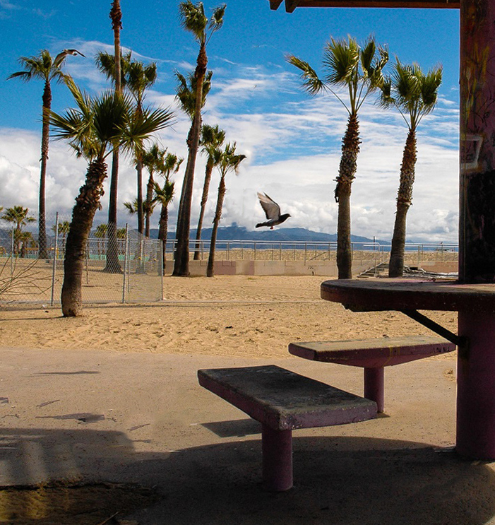 What a gorgeous image, great sky, beach scene and palm trees. In the midwest we are in winter already. I favor cropping in Les as there is a lot going on. Also reversing the image horizontally helps. I have straighten the image and opened up the visibility of the pigeon. |