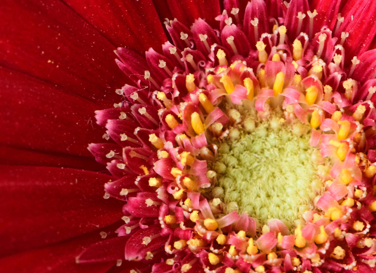 That being said, the overall softness of this image detracts from the overall feel of this image. The detail in the flower center is just not sharp enough to support the central role you have given it. We miss the detail in the very center, and the little flower-like structures that top the tips of the pistils and the small petals lack definition and clarity.