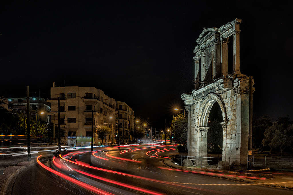 Your composition of Athens at Night is very creative way to present the architectural treasure of the arched gateway and to deal with the auto traffic that is close at hand! And you managed to find an elevated perch that allowed your lens to follow the red tail light streams well into the night. Some of the random night lights can profitably be burned in a bit. I worked on it a bit and perhaps over did the dodging a bit. |