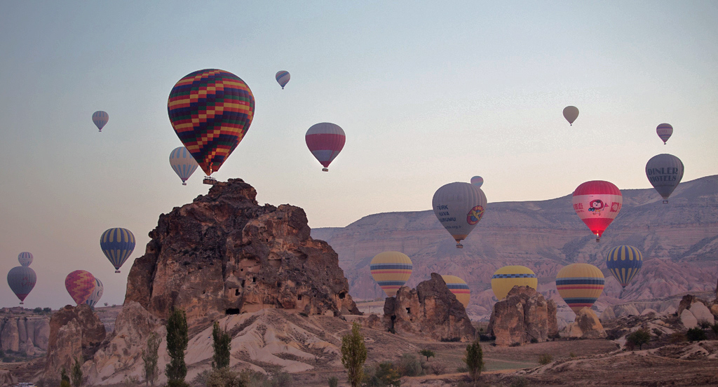 The many balloons floating up into the sky is indeed a rich opportunity! As you indicate your original, raw image is underexposed, so that the usual adjustments that apply to improving an underexposed image will have some success here. At the outset the several white vehciles on the ground play a disproportionate role in impact. To my eye it is best just to compose or in this case crop them out. Next I just added a levels layer ( Photoshop CS6) and adjusted to better fill out the tonal spectrum of the image and a curves layer to tweak midtone contrast. Then inspecting your original image, the only balloon with notable internal illumination is the red one over near the red border. For that one I used the dodge tool (highlights only) to add to the internal light of that balloon, so as to make it the sole focal point. The result is posted here for your consideration. |