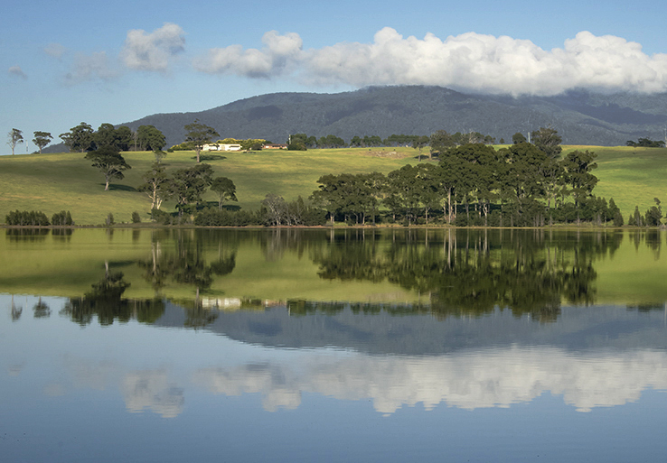 The panoramic scene offers a sweeping view and as Todd points out, emphasizes the symmetry. I notice the white rance and reflection on the left side. To feature this subject , I have cropped the image to place the ranch and its reflection into the 1/3 positions on the left. I propose this as an alternative approach for your consideration. Finally, I notice some artifacts in the trees over at the left edge. I don't know what has caused this since you did not stitch this image - but it bears looking into to discover the source.