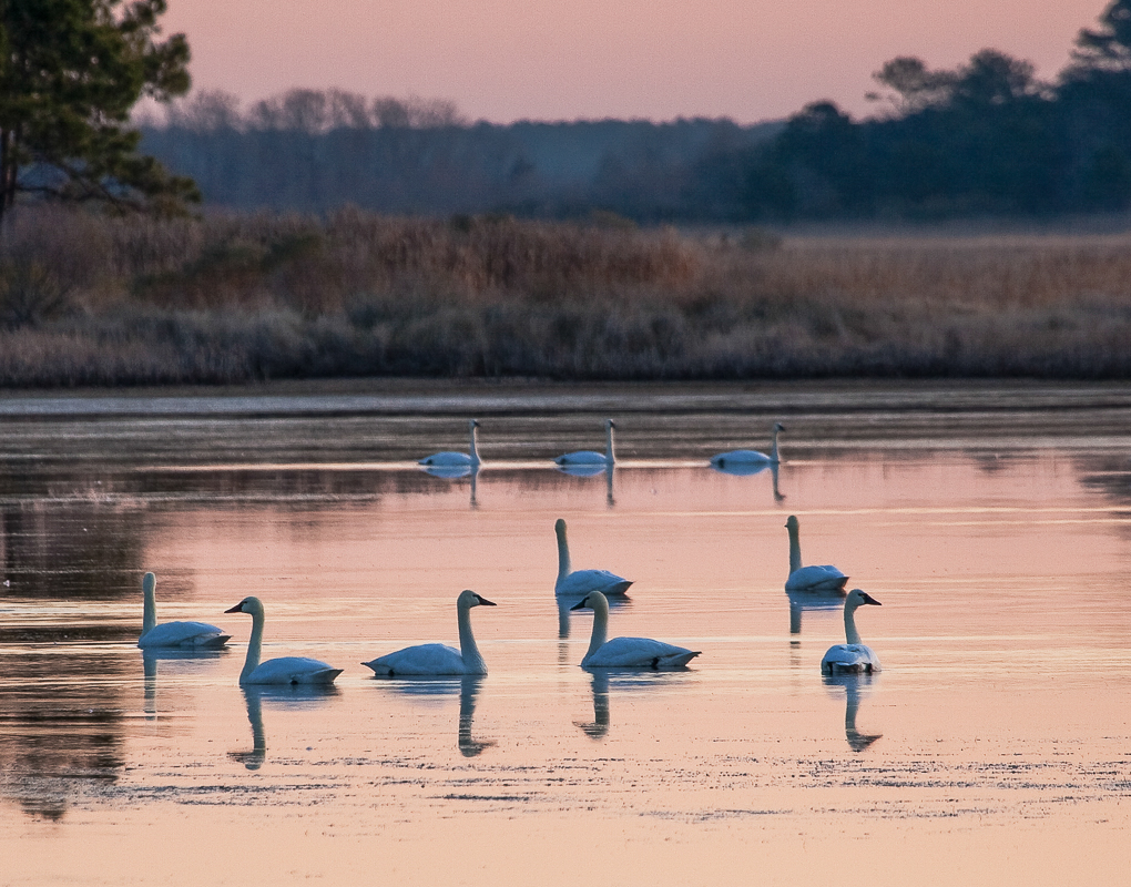 Thanks for your comments, Glen. I wanted to include enough of the environs to show where these swans live - out in the country as opposed to a city park. If the feature were intended to be only the elegance of the swans, then your suggestion is a good one. |