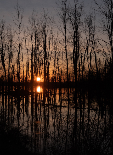I also am impressed you got this all hand holding the camera. Between your camera's ability to hand fast bracketed shots and your hand holding stability, I think you nailed it. I like the mirror reflection with this light. The exposure is perfect and creates a great mood. I had a little different approach to the cropping, to put the moon in the left quadrant and let the reflection branch off to the right. |