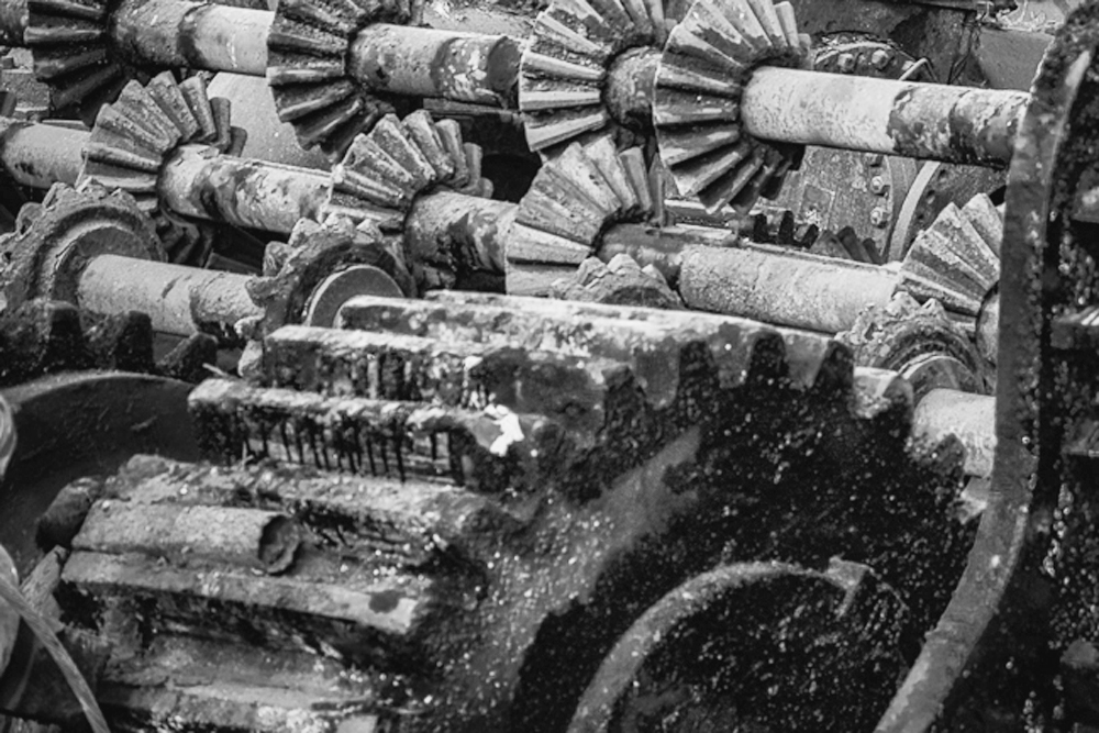 I agree with Jim H about the background - it really does clutter up the scene. I cropped it out completely to focus on the gears - the star of the image. Also worked on adding contrast. |