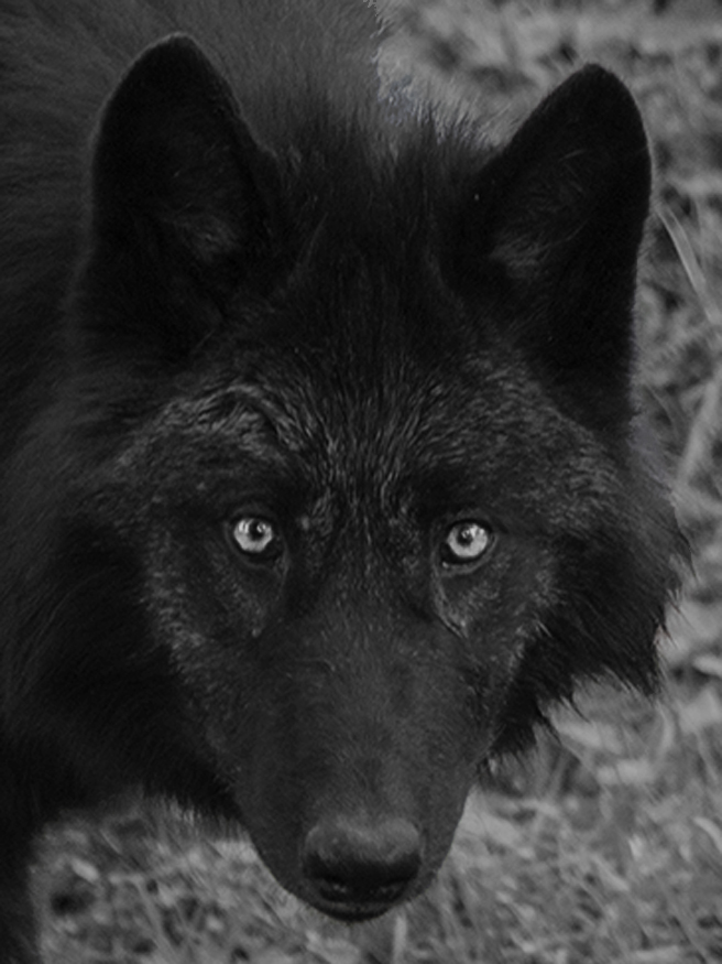 To better track with your title, I cropped in tighter to the wolf's head and emphasized its eyes. Thoughts? |