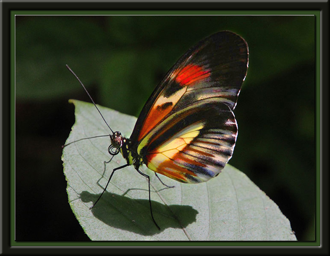 Lovely shot. One of my favorite things to do is to spend several hours in a butterfly house like this. This is certainly a fine example image from the day. Love the framing, too.