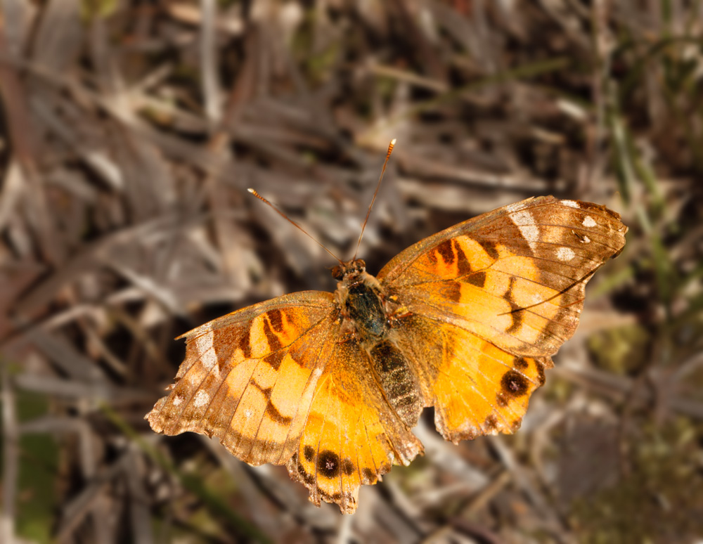 Here's a rendition with the background blurred and desaturated slightly to help the butterfly pop out: |