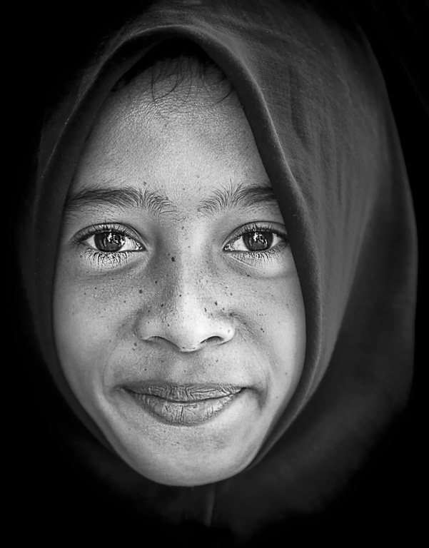 You have a very strong image to start with this month! This is a face that draws you in and threatens to hold you captive for eternity! My suggestions to take this to the next level is add some contrast and clarity and, using her eyes as your horizon, straighten the image. Here's my take on it: |