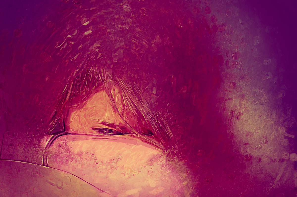 I began by masking off the area of focus - the bit of face in this case - and smoothing it for more of a posterized look, with the remaining image given a substantial blur. Next came broad splashes of color for "under-paint", followed by smaller splashes of color in a circular pattern for a quasi-impasto effect.
