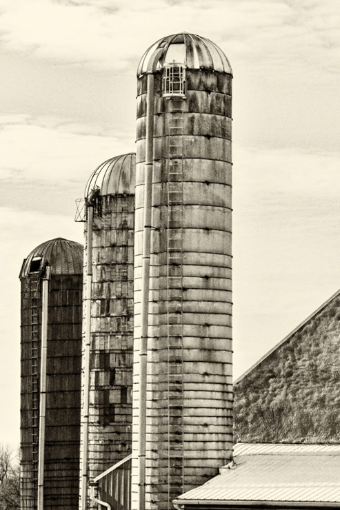 I like this image just as it is, with one exception. The slight lean of the farthest silo is somewhat distracting. I corrected the lean with DxO Viewpoint, resulting in the following: |