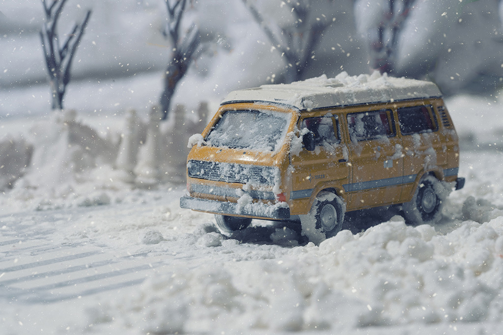 While I have seen trees with leaves in the snow, it doesn't work in this image for those splashes of color to be present.