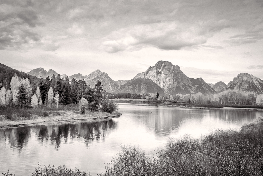 Gorgeous scene, Jim! It was good that the saturation was boosted in your intermediate image, which allows for more tonal adjustment once converting to mono. I think perhaps you went a bit dark in the midtones, which slightly flattened the image. Try using a blue filter to bring out more tonal variety, as I did here: