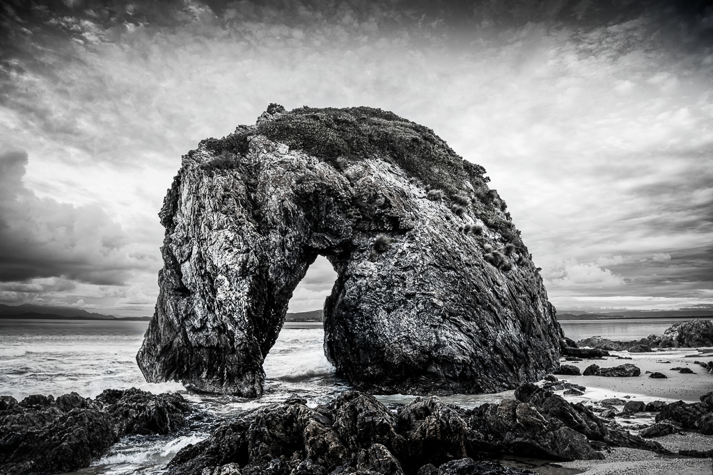 I would suggest bringing out more tonal variety in the "horse," as it tends to read a little flat with the brightness of the sky. I tried adding the original above the mono, changing the blend mode to Soft Light and masking everything but the "horse." What do you think? |