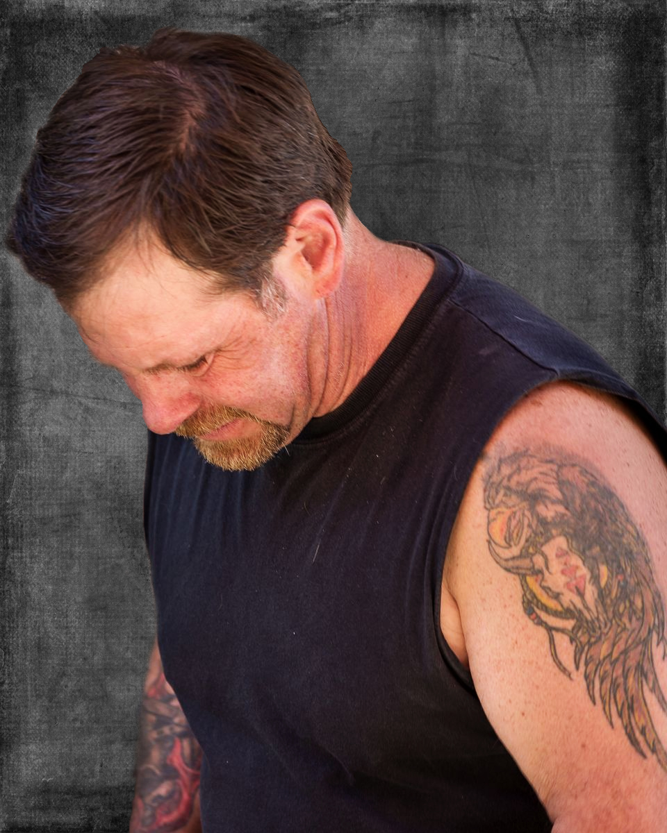 I found the background slightly distracting, especially in the upper right corner. Since it doesn't add to the story of the image, regardless of the title, I had a go at replacing it with a simple 2 Lil Owls texture (Blk Screen Col 1-22) and added a second copy of the man with the Soft Light blend mode @ 42% opacity to give him a little more depth. What do you think? |
