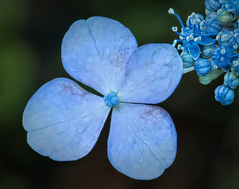 I never would have thought to "go negative" with this flower. It makes a strong statement and works pretty well for me, though the center of the flower is a tad too bright, losing some detail in the process. I duplicated the layer and changed the blend mode to Multiply and then masked in the effect on the center of the flower. What do you think? |