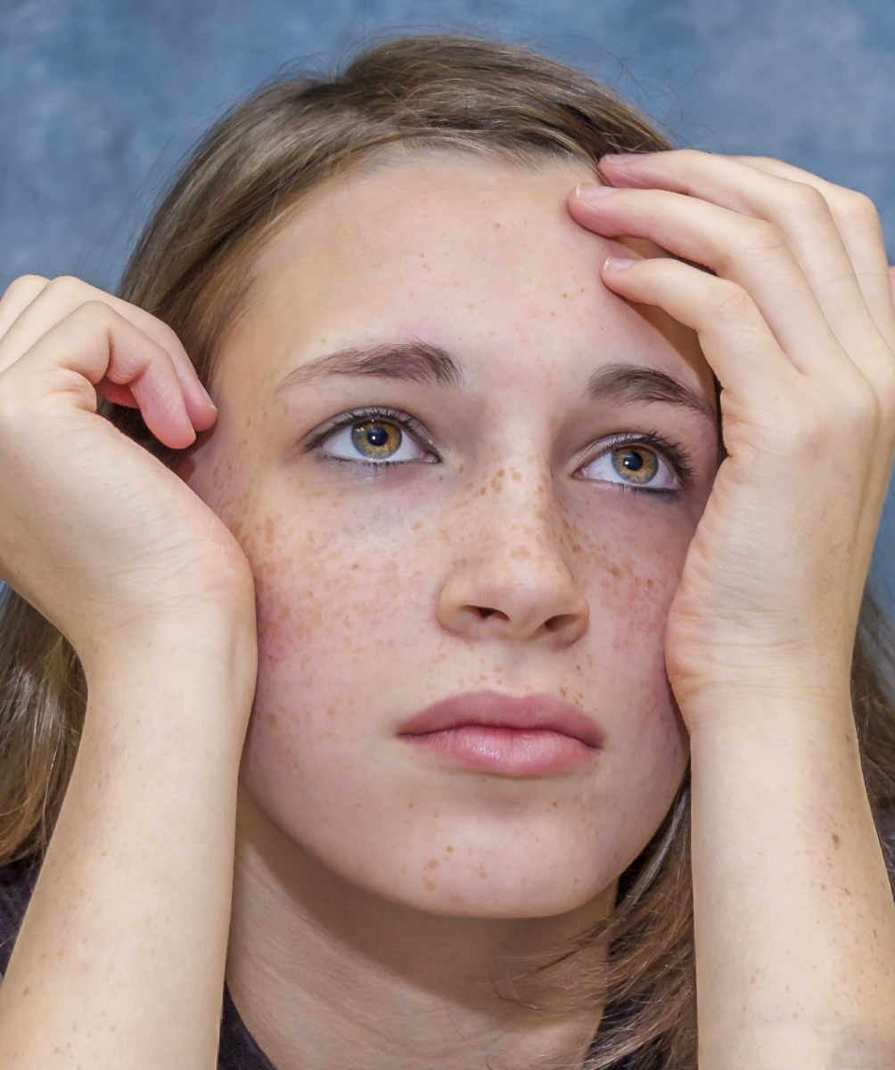I hear what all but Dan are saying, but my problem with showing all the arms is that it tends to pull focus away from her face because there is more flesh at the bottom of the image. Here's a slight crop change, including more of the arms. I think it still takes away too much from the face. perhaps something else can be done to better frame her face besides all her arms. |