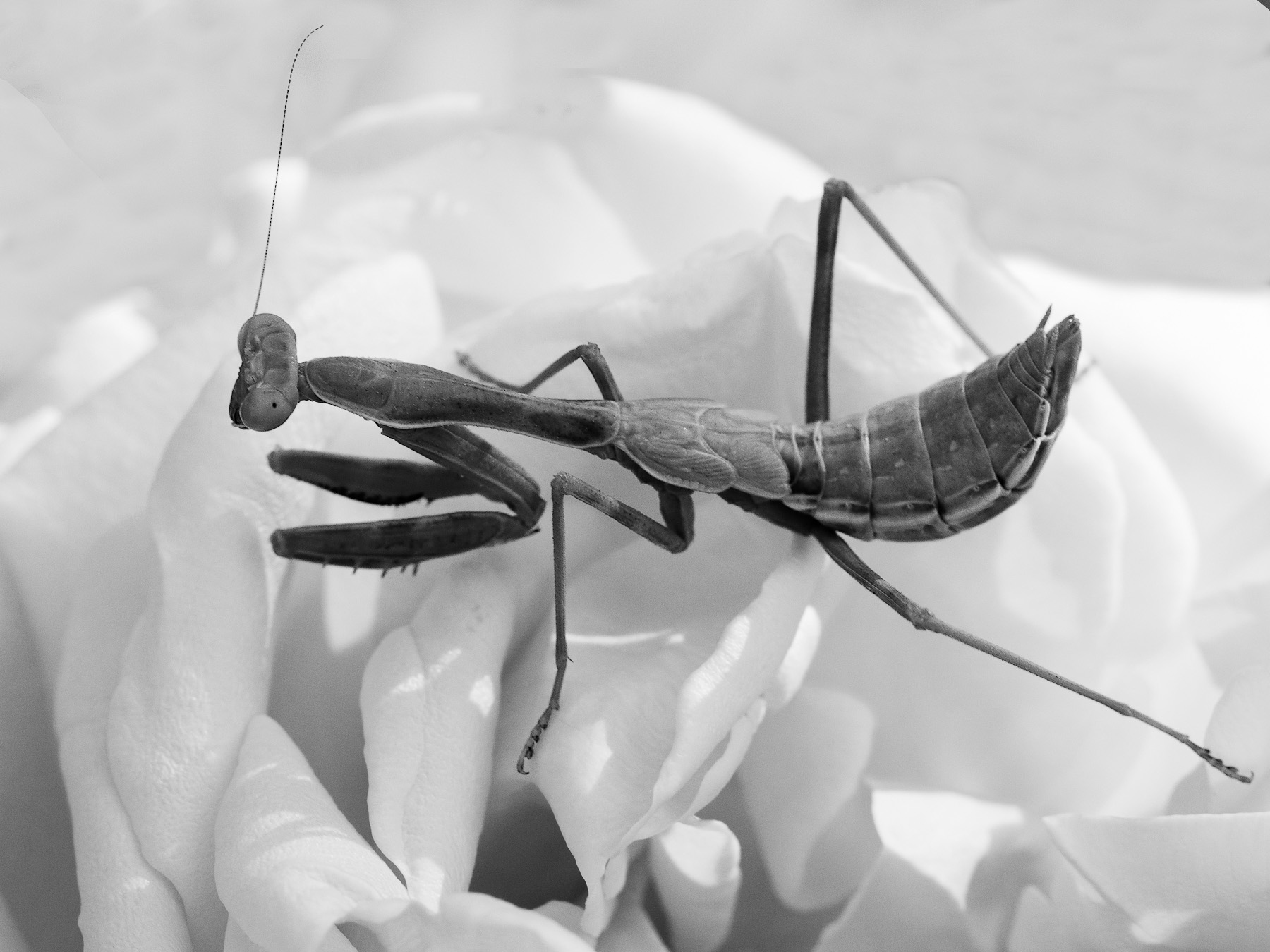 By sharpening the mantis and cloning out the background (letting the flower merge into it), it really helps the mantis to pop! What do you think? |
