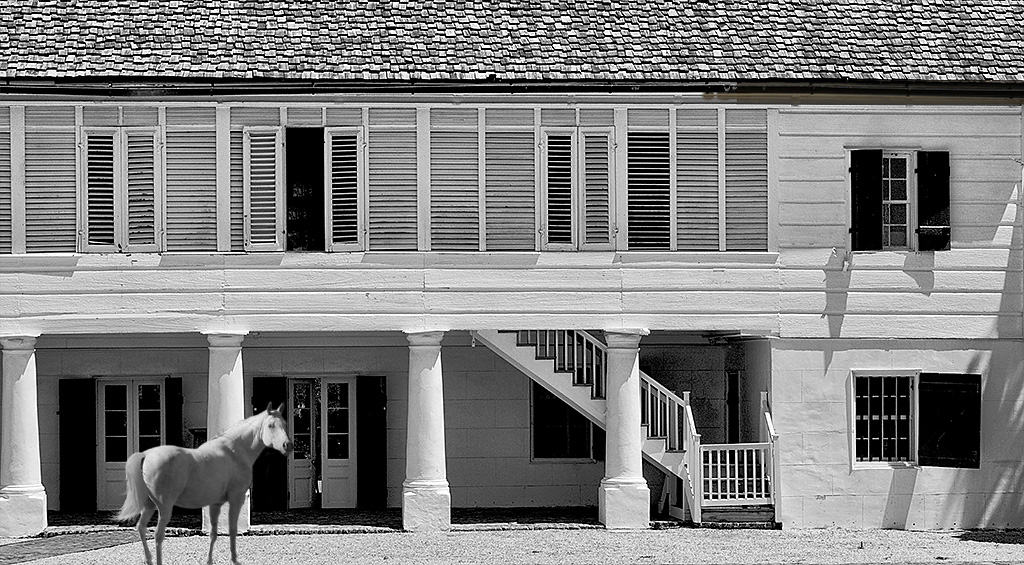My eye is confused, though, on where to focus. The open door is a natural draw, but there isn't anything that I can make out to focus on. The open shutter above does the same thing.