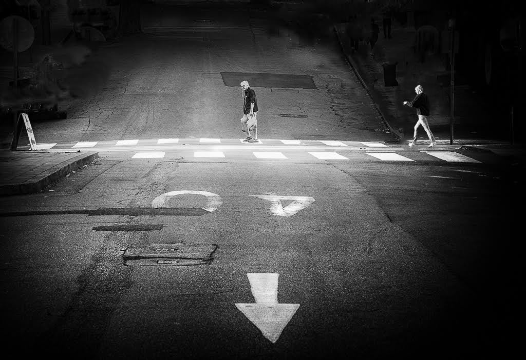 I like how you vignetted this piece to direct the viewer's eyes to your subject. My only issue is the person walking away on the right side - it pulls attention from your subject. By reversing the person it adds an addition focus aid towards your subject. What do you think? |