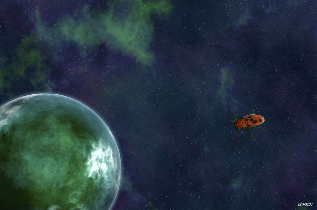 Certainly seeing a beetle on a leaf floating in space makes no sense and confuses the viewer. That's more or less what I was going for. Guess the story is too “Out There.”. d:¬{( |