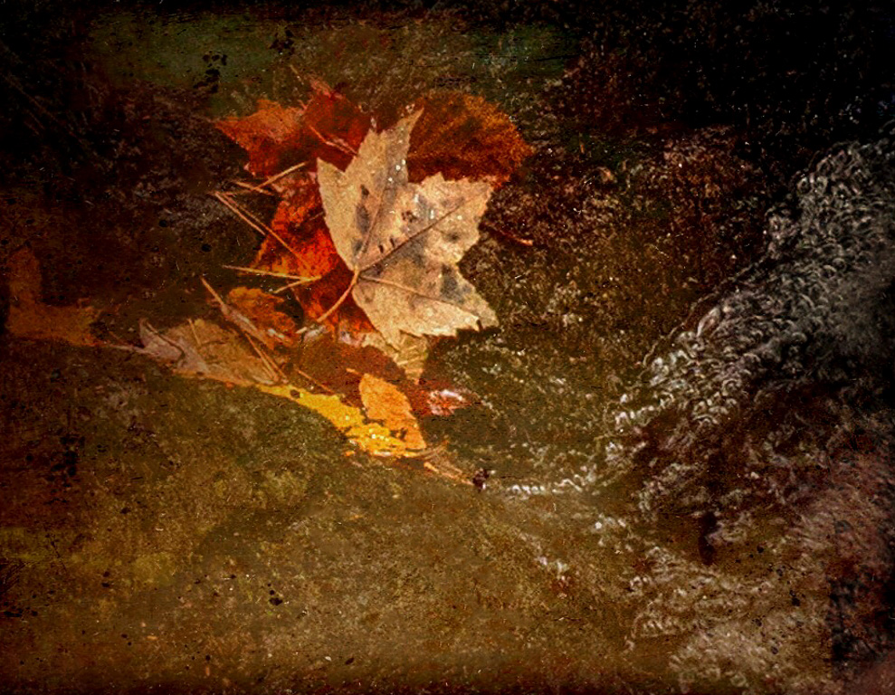 Lovely colors and shapes! I actually like your crop over the others. For me, there is a lot of "stuff" in the water that distracts somewhat. Here's a rendition with the "stuff" removed, giving more focus to the leaves and the water, plus a hint of sharpening: |