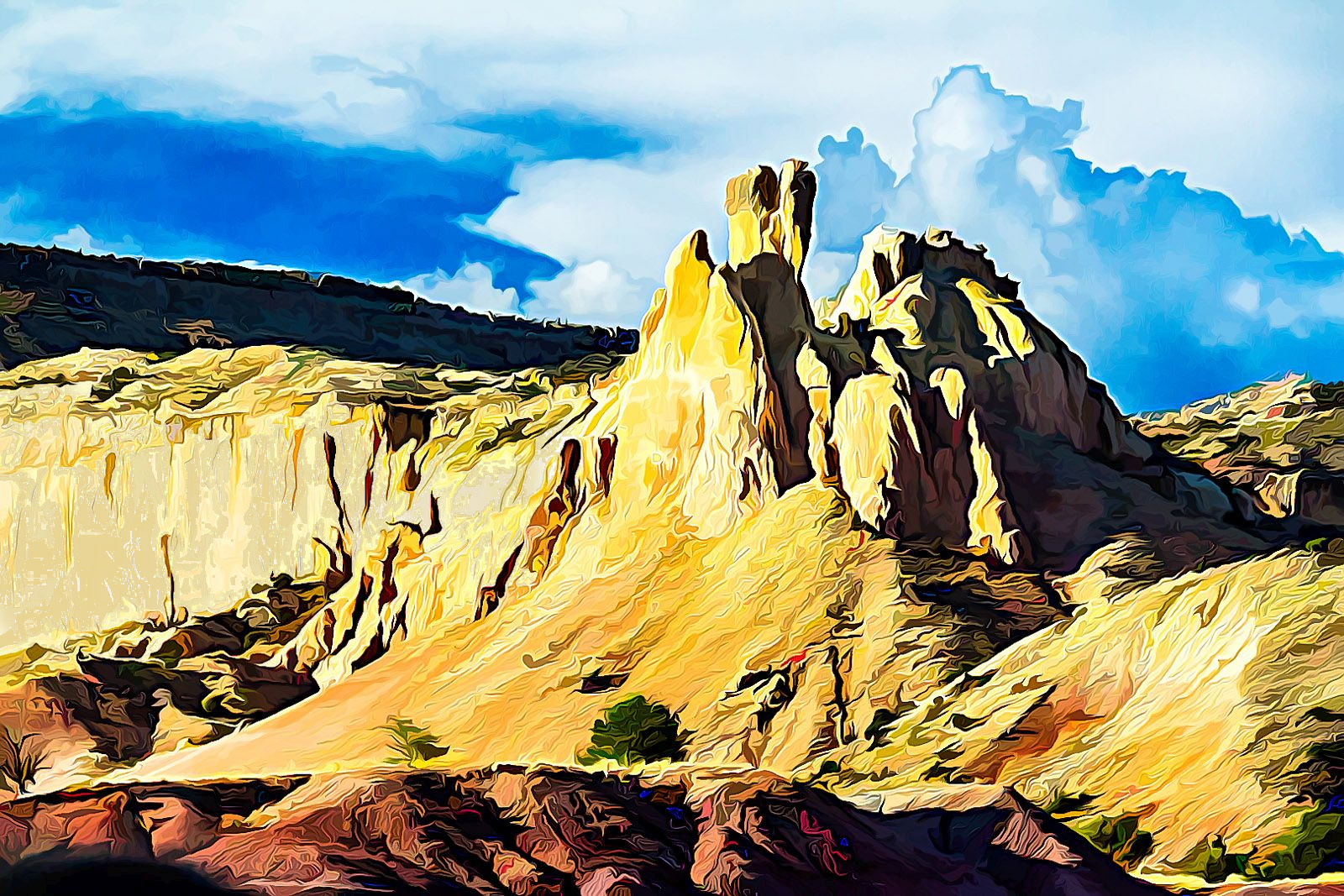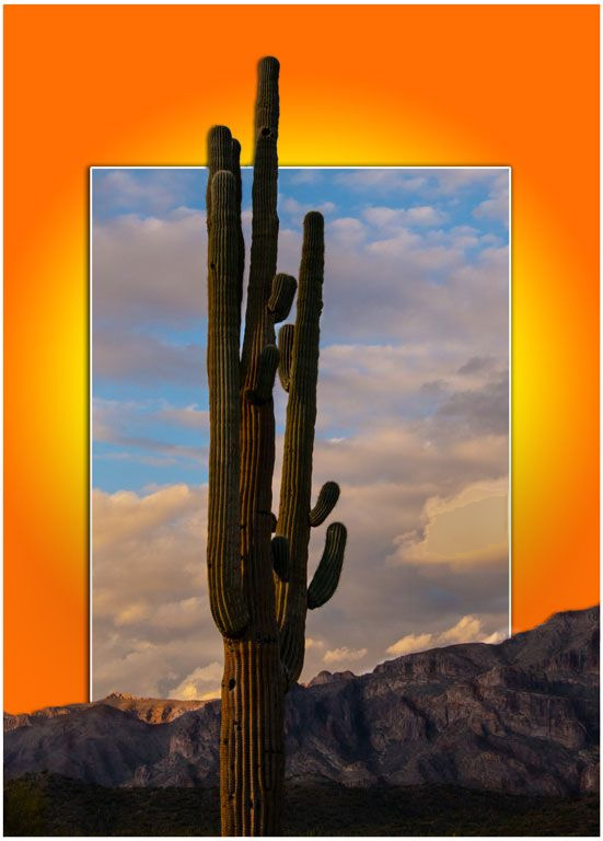 Great transformation of a standard desert image into something that really pops. Yes, there are a few nitpicks to complete this: small cactus in lower right; better lighting for the cactus and mountains; and large cloud that is a bit bright. These are fairly minor, though and the image reads well as it is. I did have a go at editing the nitpicks: |