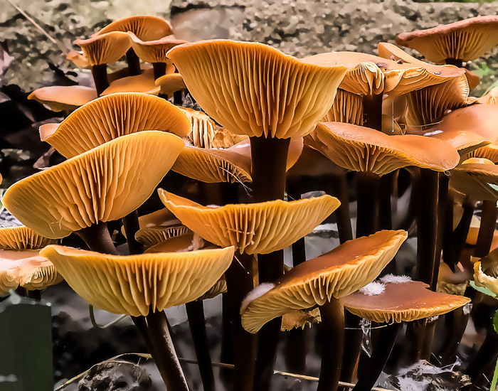 Love the mushrooms, hate the greenery, echoing what others have said. My suggestion would be some judicious cropping and to desaturate and darken the green in the bottom left: |