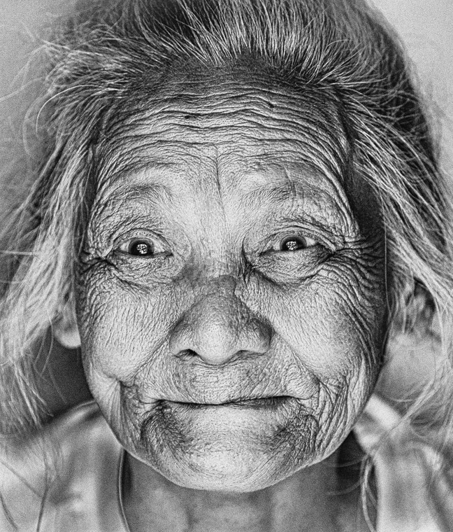 Powerful image, Sharron! Such character and vitality in this face. I do find the shadows in your conversion a bit dark. I applied the Subtle Glow filter in Silver Efex Pro to soften them a bit: |