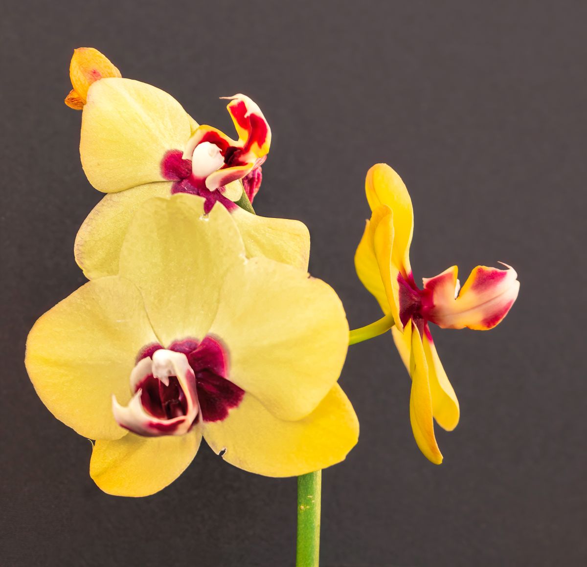 I processed your image in Topaz Sharpen AI to sharpen the focus some, then into ACR to reduce the highlights & exposure of the main orchid; add some contrast, clarity & texture to it. Finally, I did a little dodging and burning to add a tiny amount of dimension to it. Thoughts? |