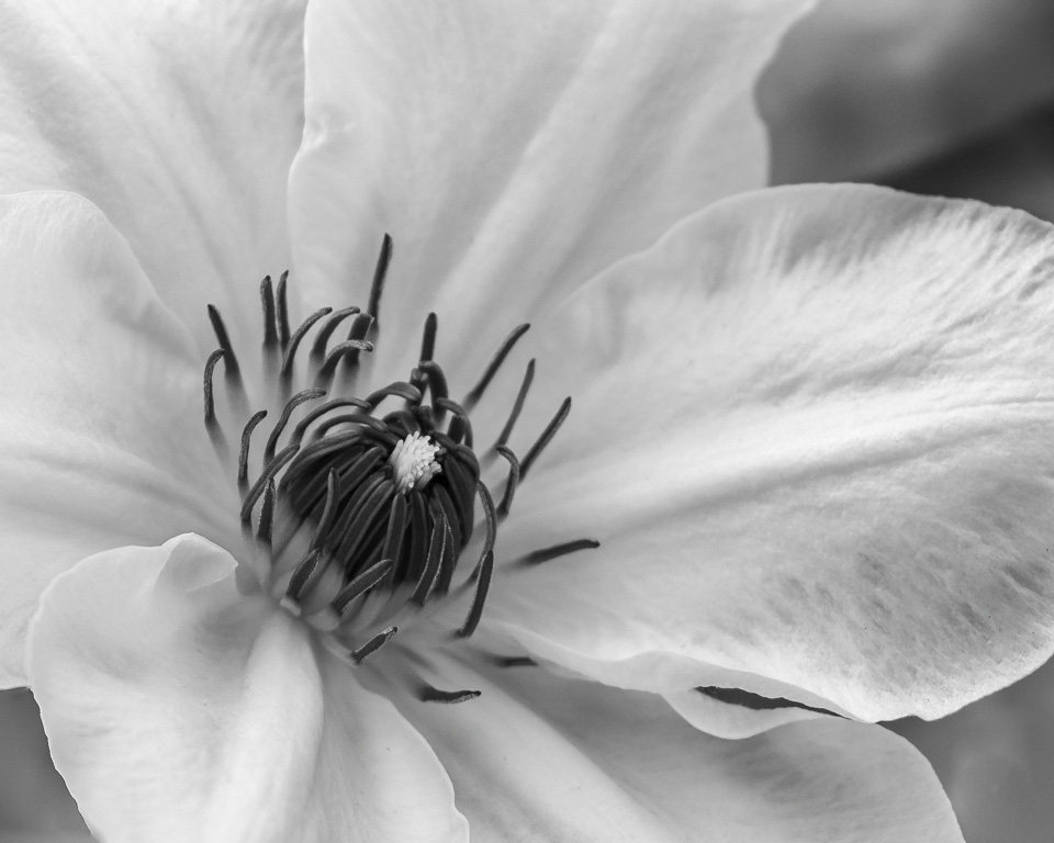 I think you would have been better off to darken the luminosity of the greens in your conversion to give more tonal variation between the petals and the bottoms of the stamen. While a high key approach makes for a dreamy image, I personally find the loss of texture calls for some dodging & burning to bring it back. I know that surprises you coming from me. d;¬{D |