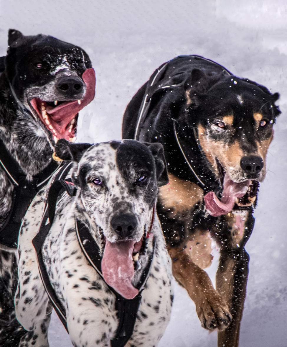 I also found some chromatic aberration along the right side of the top left dog, so ran this through Adobe Camera Raw to correct that and remove some of the noise. Then, I added more space at the top and simulated the top left dog's head. Then I removed all the distracting elements so that the viewer can focus on the dogs and brightened their eyes a titch. Thoughts? |