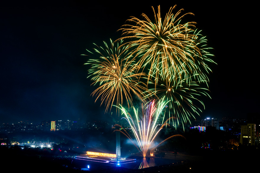 Great result from a 12-second exposure. Fireworks photography can be tricky, especially when doing such a long exposure. One of the chief downsides to a long exposure at night is parts being exposed too much. In this case, the sky and the smoke from the exploding fireworks is distracting from the majesty of the colorful lights in the sky.