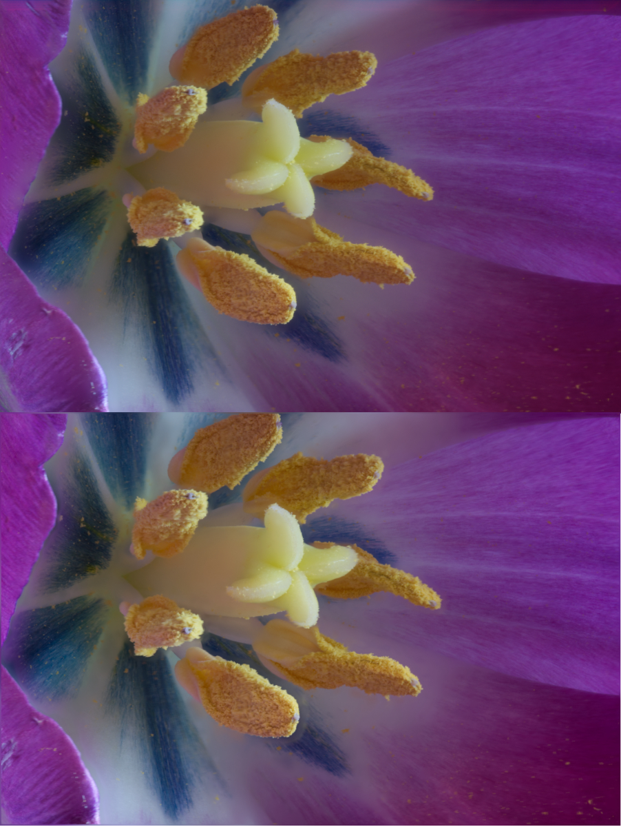 Before I saw your reply, I had tried out Affinity with the stack I submitted last month and, I was quite pleased to see, the result was actually a little bit better than what I got out of Helicon Focus. I've attached a comparison of the 2, with the Affinity version on top. There is very noticeable haloing around the bottom stamen in the Helicon output, which I had to clone out. It's barely noticeable on the Affinity version. This is, of course, the fault of the stack ultimately. My rail is very cheap and does not move as with the precision needed for the best stacks. Someday I'll be able to afford a better rail. d:¬{(
