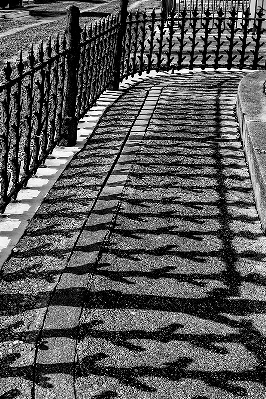 I think these shadows are so cool! As everyone has said, mono is the right choice and helps us to pay attention to the shadows.