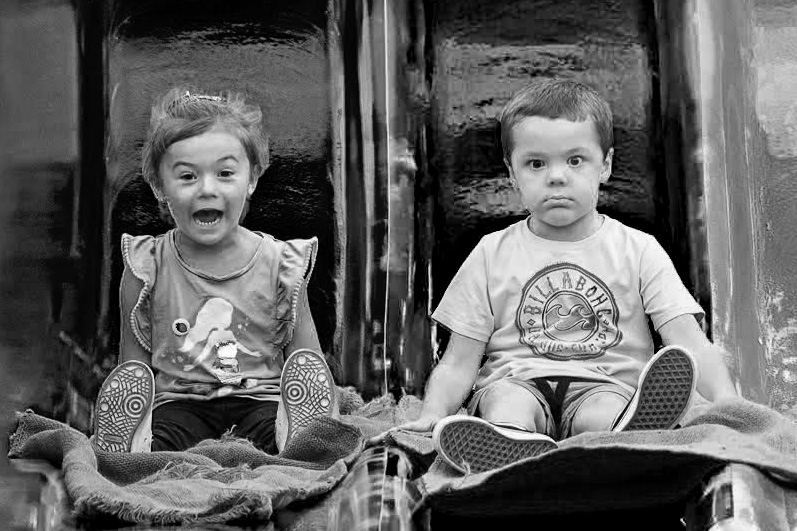 This is so very much fun! I chuckled loudly when it came into view. You're at the perfect angle to freeze the motion and focus our attention on the extremes of expression on the two kids. Marvelous.