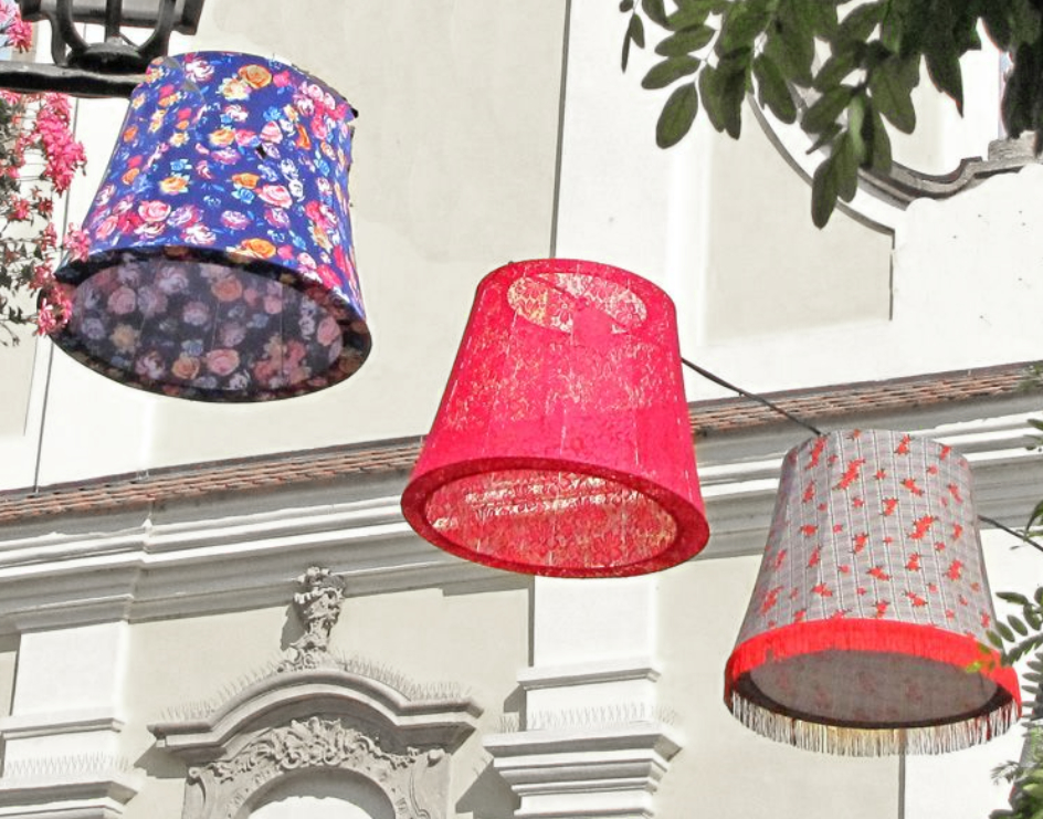 Rather than employ a vignette, which does really pull the viewer's eyes to the lampshades, I chose to apply an HSL filter to the image, desaturating the wall so that it no longer competed, and cropped in to eliminate some of the other distractions. Thoughts? |