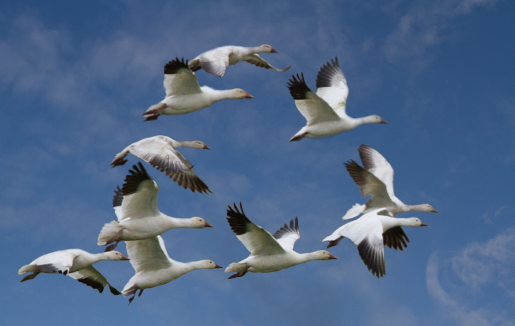 In the other 2 renditions, as with this version, I flipped the image horizontally so they were flying left to right. I also removed some distractions, including the water, and actually some of the geese as the scene was very chaotic. What do you think? |
