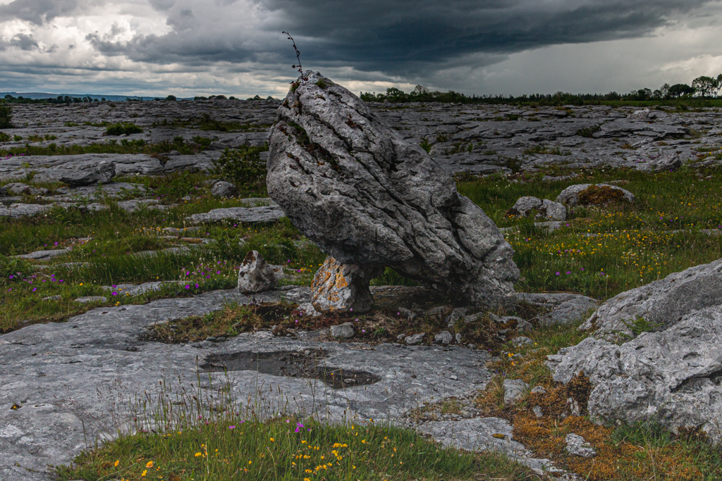 I did my typical Dodging & Burning - added a blank layer set to the Overlay blend mode, then painted with a soft round brush with 5% opacity in white to dodge or black to burn. I brightened the subject rock and darkened its shadow areas and the flat rocks in the background to help the subject rock to stand out more. Thoughts? |