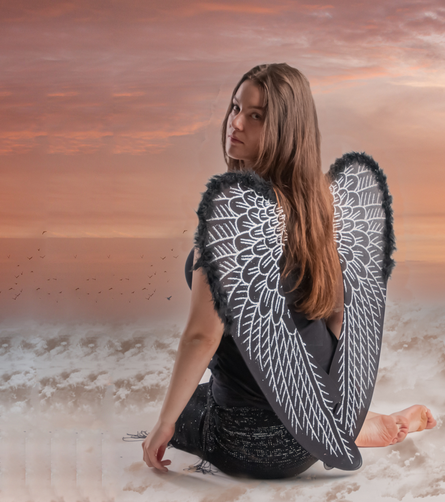 Beautiful portrait of the girl and I think it's a good setting. I have 2 suggestions to improve your image: 1) remove the glow around her, which looks a bit artificial to my eye; and 2) make more room to the left of her to strengthen the composition. Here's a quick version to demonstrate that: |