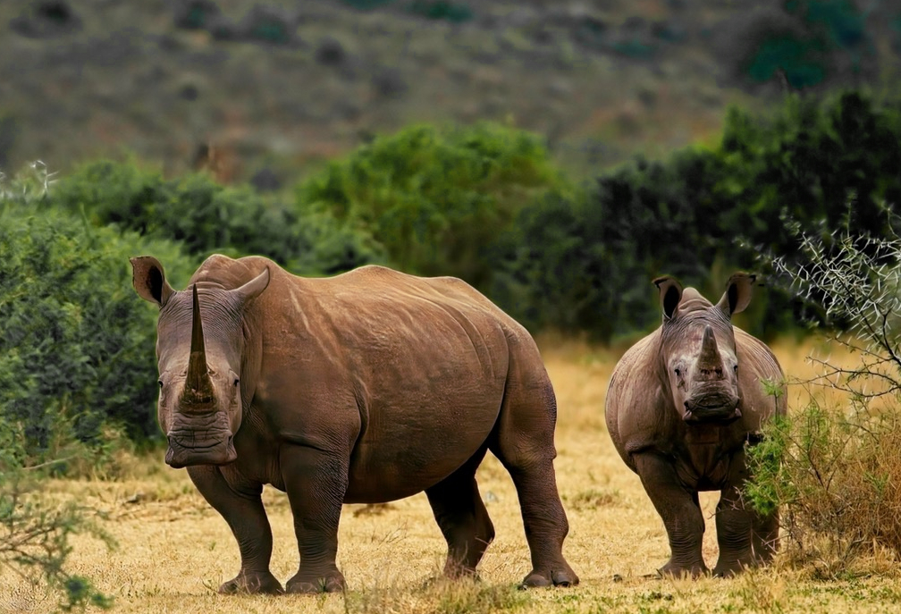 I did feel there was a slight green cast on the rhinos so adjusted their color and muted the colors of the background. I also cropped a bit of the background out to give more focus to the rhinos. |