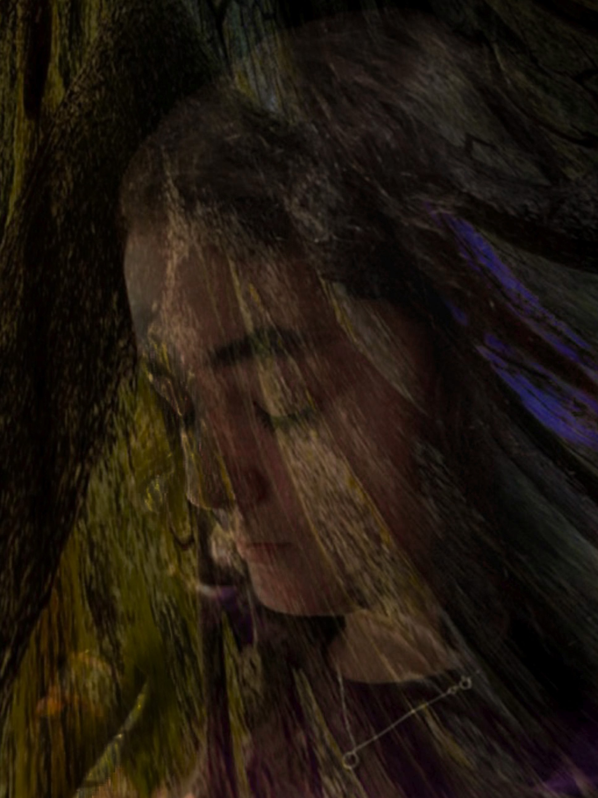 Very contemplative piece. Rather than brightening her face, you might consider darkening the "tree" a little so her face shows a bit more. Thoughts? |