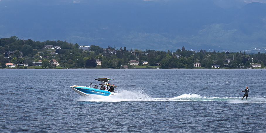 You managed to capture a lot in this image, including a jet flying in the opposite direction of the skier. I found the sky a distraction, so cropped it out and moved the boat and skier down some to make a stronger composition. Thoughts? |