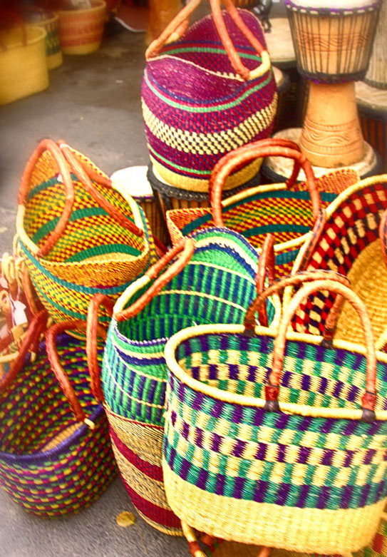 A very colorful, well composed shot Al. Instead of cloning out objects, I like Steve's composition by cropping tighter - it does cut off some of your subject baskets, but that does not bother me - I feel it concentrates the viewer's eyes on the points of interest. Hope you don't mind that I took a stab at it. |