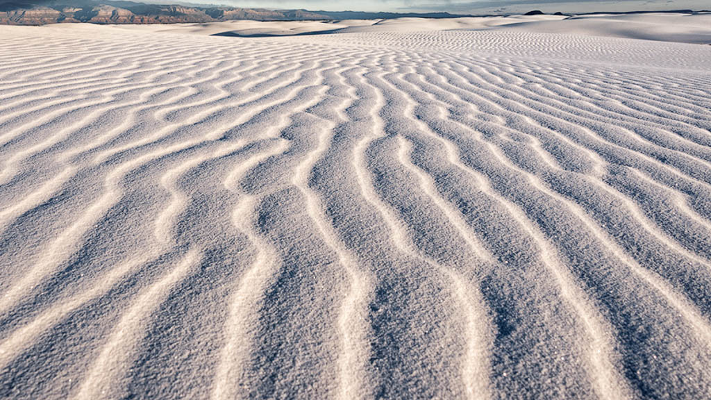 This has great depth of field, detail, pattern, contours, and lines - all draw me in. The 16mm lens emphasizes the sandy foreground while diminishing the background mountains. The grand sky to me is trying to compete with this simplicity; it's almost two images.