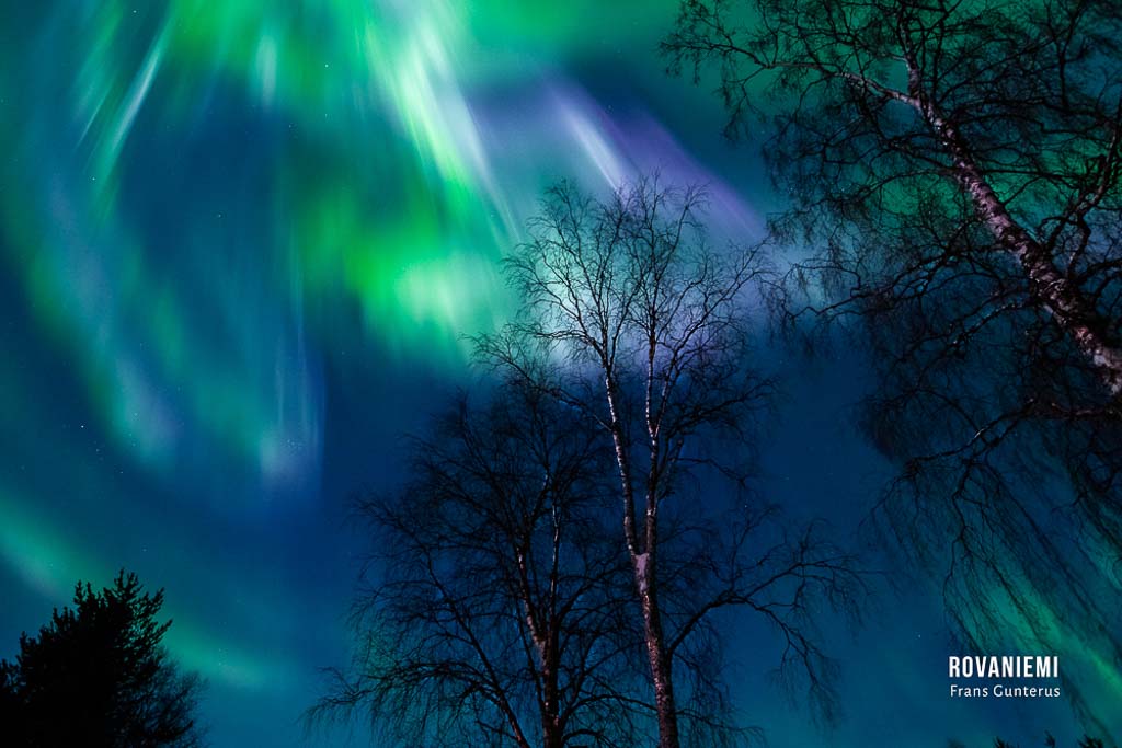 The colors really caught my eye and made a strong impact. I like the diagonal composition of the trees spread across the aurora, the way the tree way to the right points up parallel to the aurora rays beaming down. The lacy veil of their leaves atop the shimmery colors enhances them. Just enough stars are twinkling through. Nice atmosphere and mood.