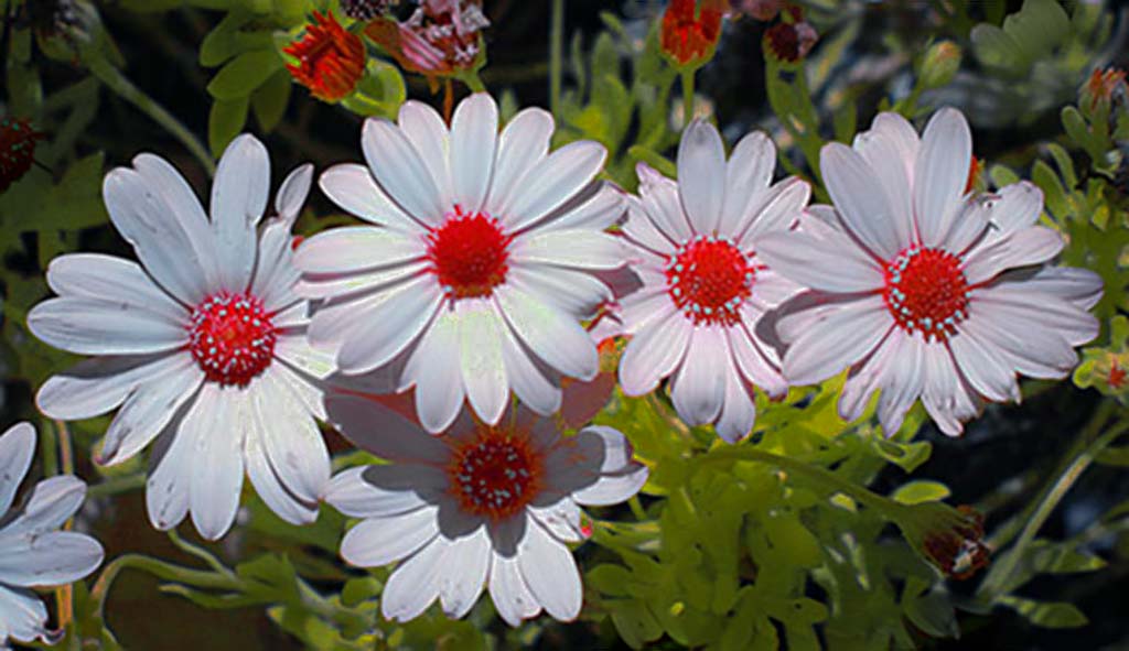 I quite enjoy how the IR has made the reds more vivid especially with the tiny white spots, and the petals seem softer and more translucent. The petals have also absorbed the surrounding red light. Nice composition.