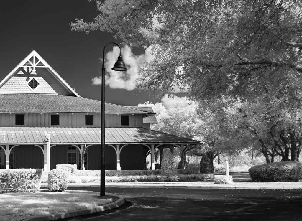 The architecture, dappled light, lamppost and tree are very appealing to me. The lamppost seemed to be getting lost by merging with the tree so I fooled around with the clouds a bit to separate them. And then I cropped to bring in more of the lovely tree and try to balance the Clubhouse with the tree and reduce the front and center impact of the lamppost which I lightened a bit. It's merely my feeling. B&W is a good treatment for it. |